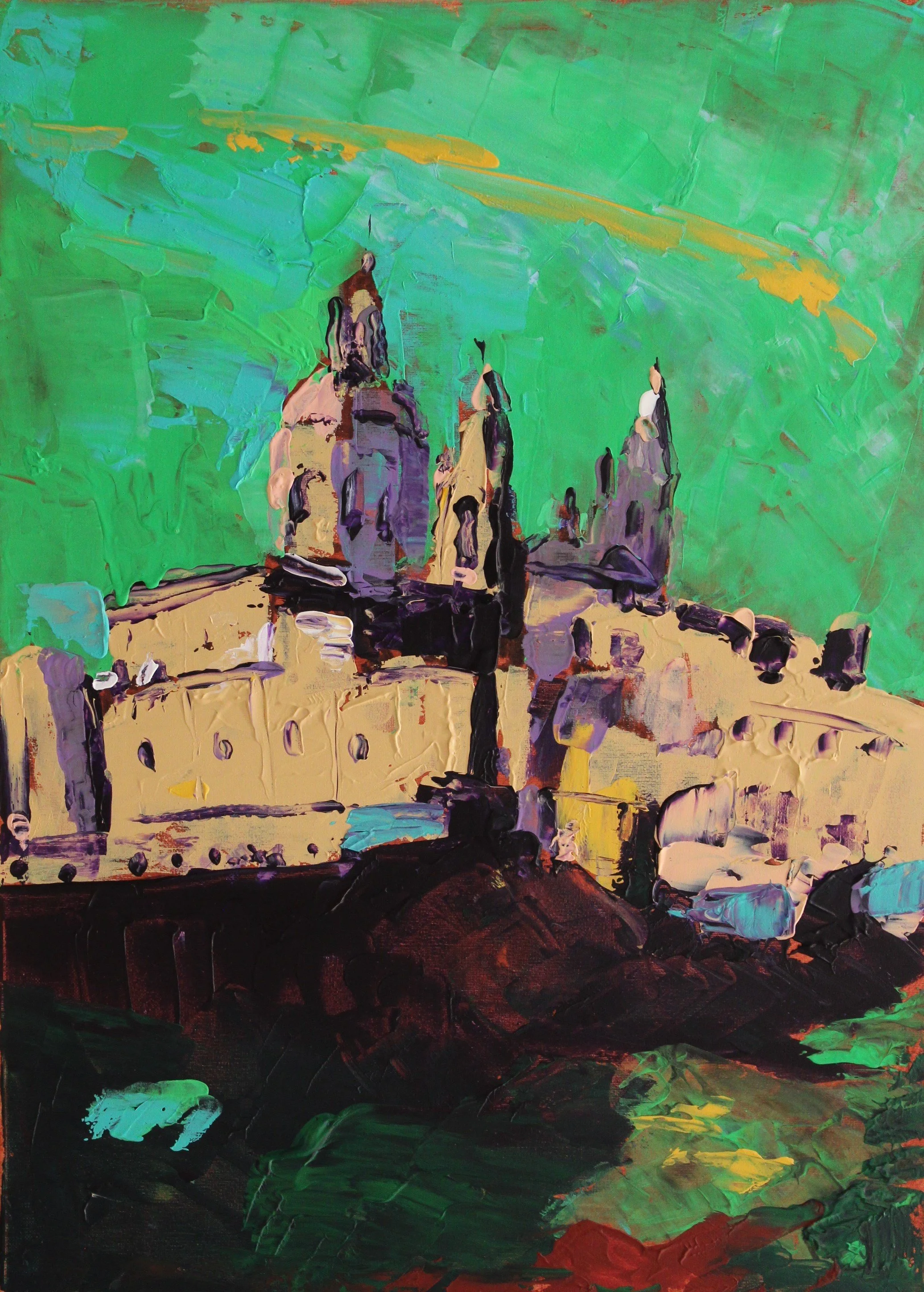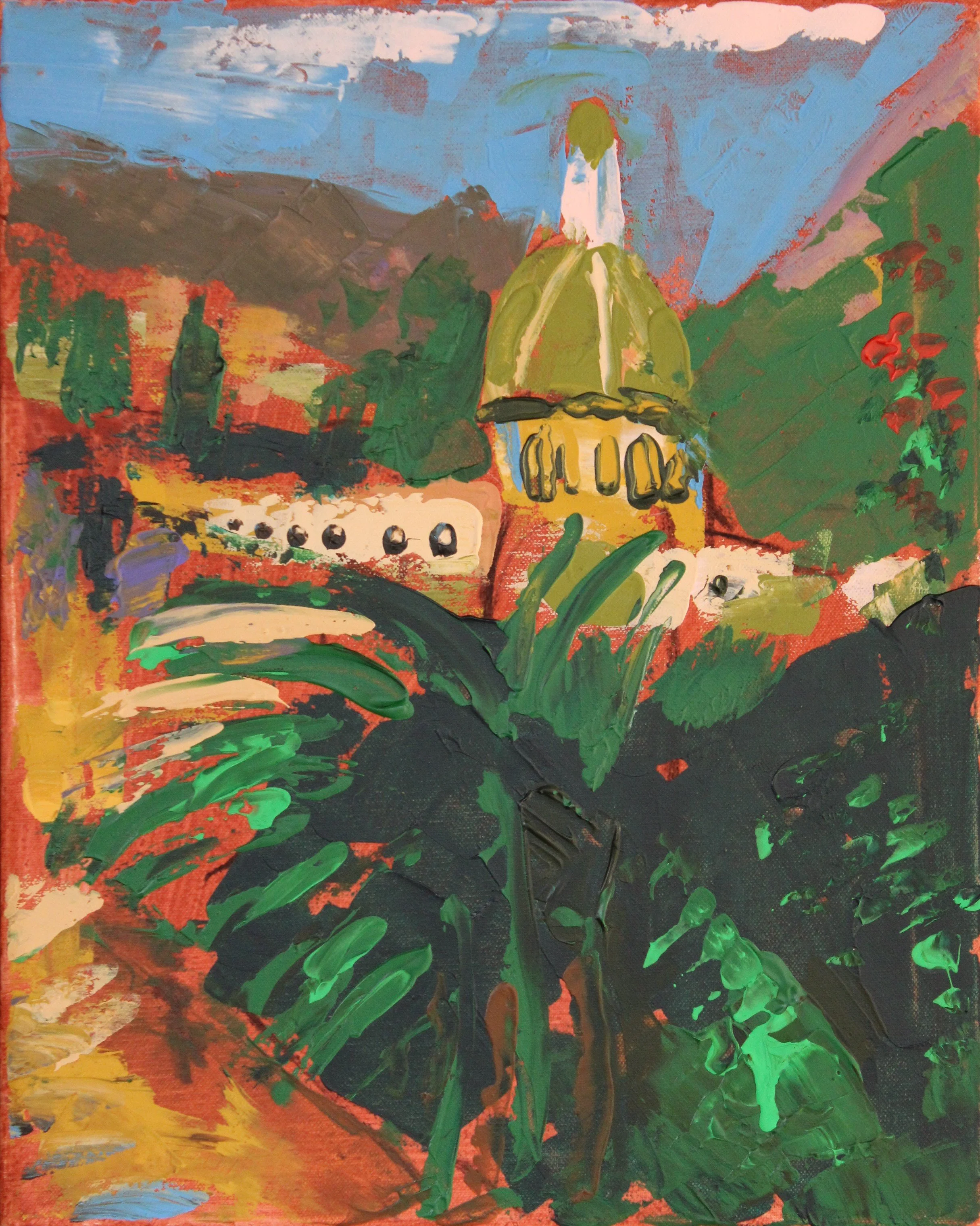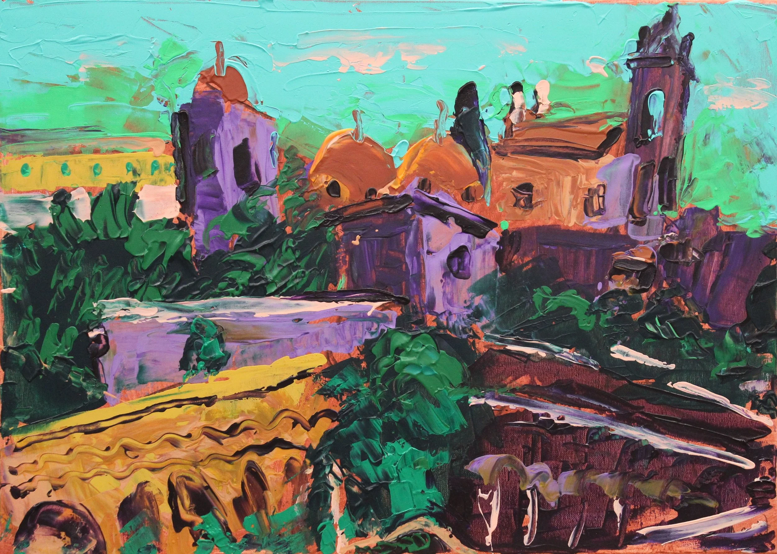 "Chiesa San Giovanni degli Eremiti, Palermo, Sizilien", Acryl auf Leinwand, gespachtelt, 50 x 70 cm, September 2025 (IF-991)