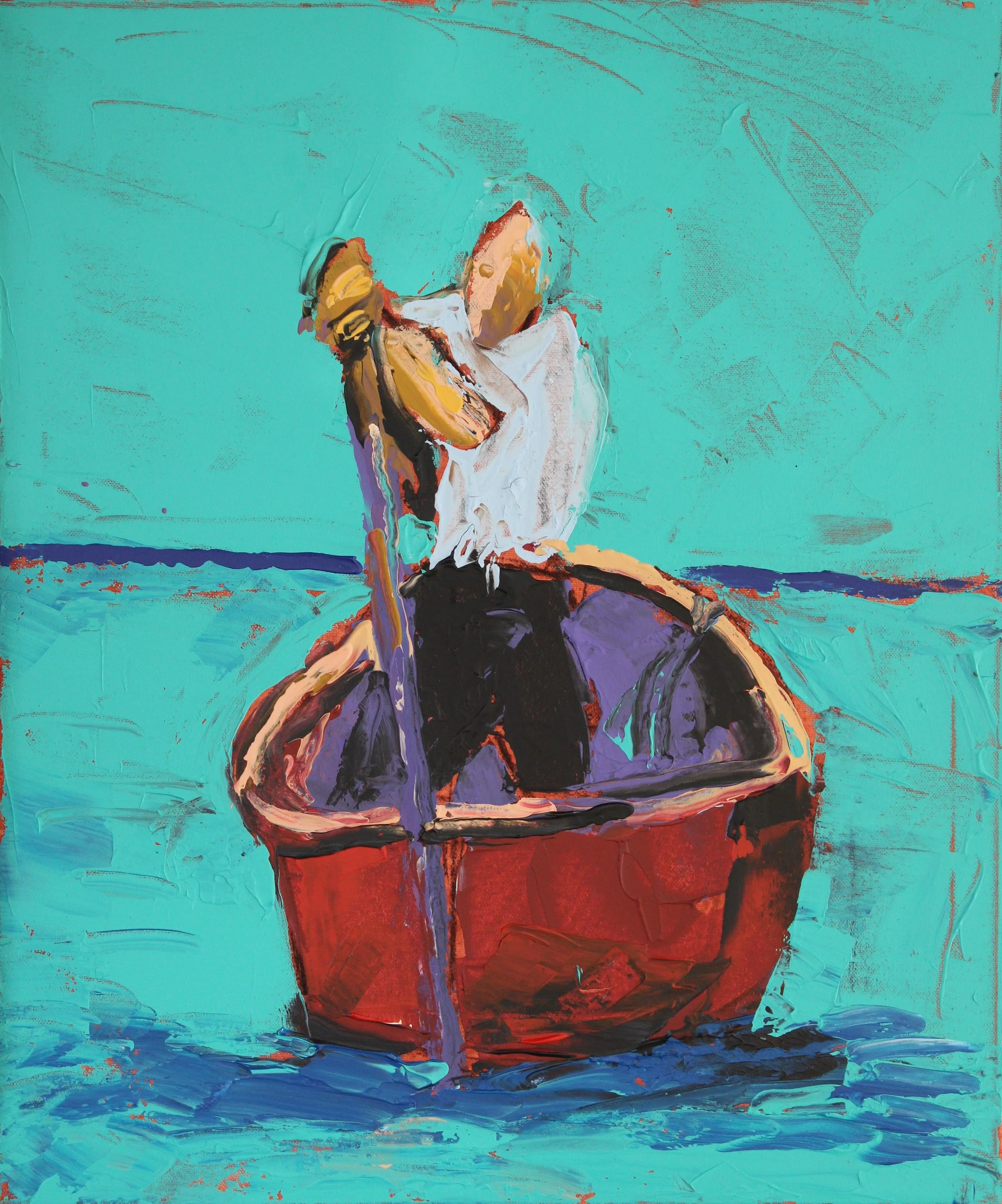 "Ein Kalapalo (Dschungelindianer) am Rio Xingu, Amazonasgebiet, Brasilien", Acryl auf Leinwand, gespachtelt, 50 x 70 cm, September 2025 (L-992)