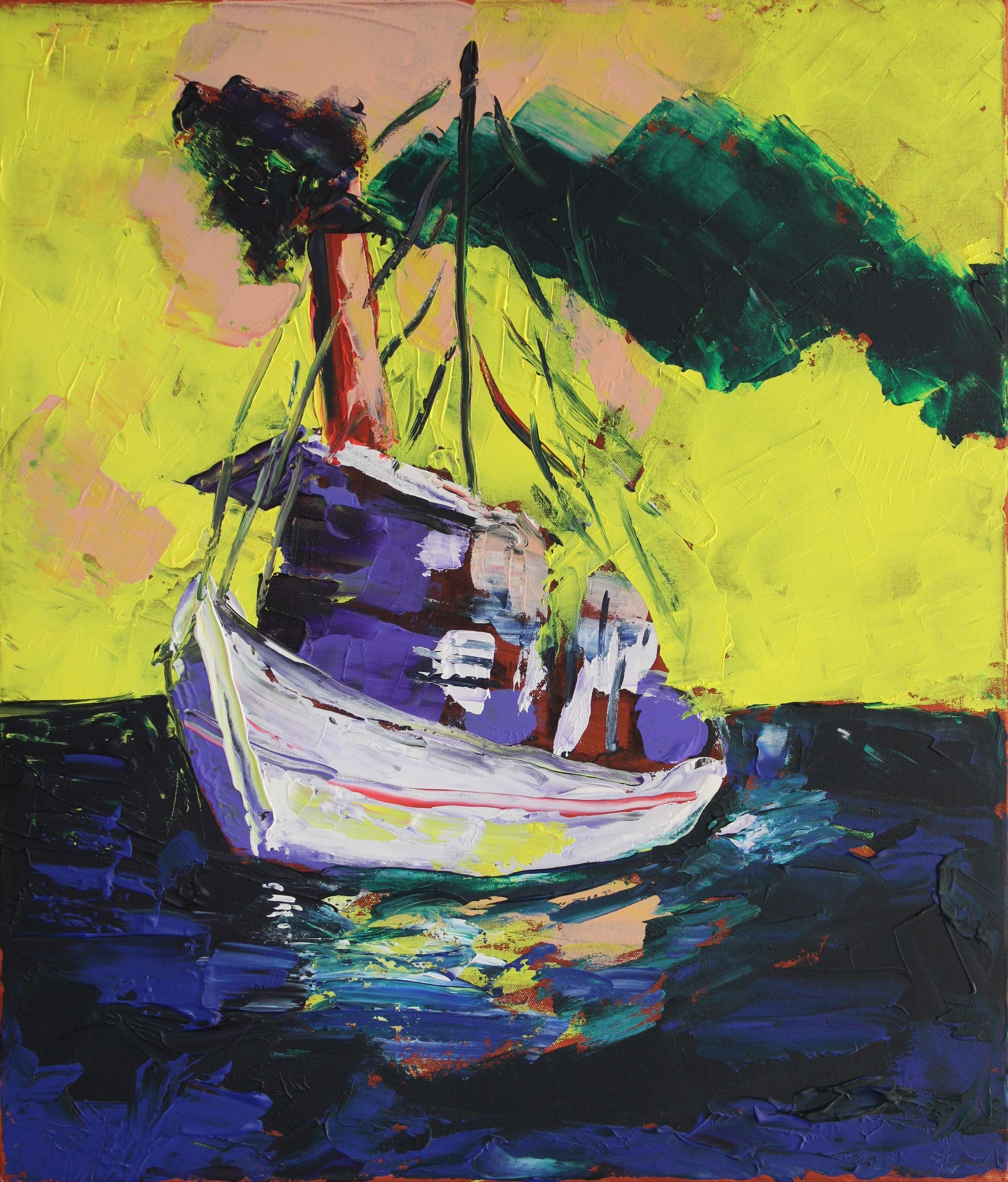 "Fischerboote an der Playa Blanca, Lanzarote", Acryl auf Leinwand, gespachtelt, 50 x 60 cm, September 2025 (L-996)