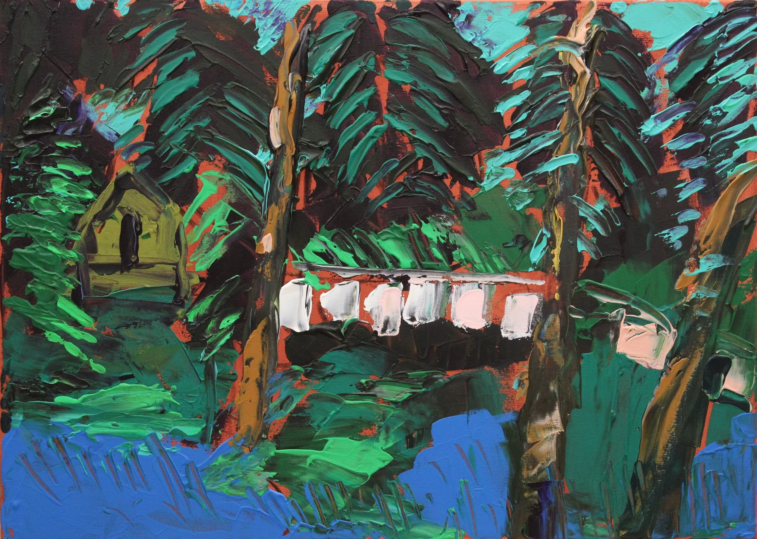 "Hängebrücke bei Ubud, Bali", Acryl auf Leinwand, gespachtelt, 50 x 40 cm, September 2025 (L-1008)