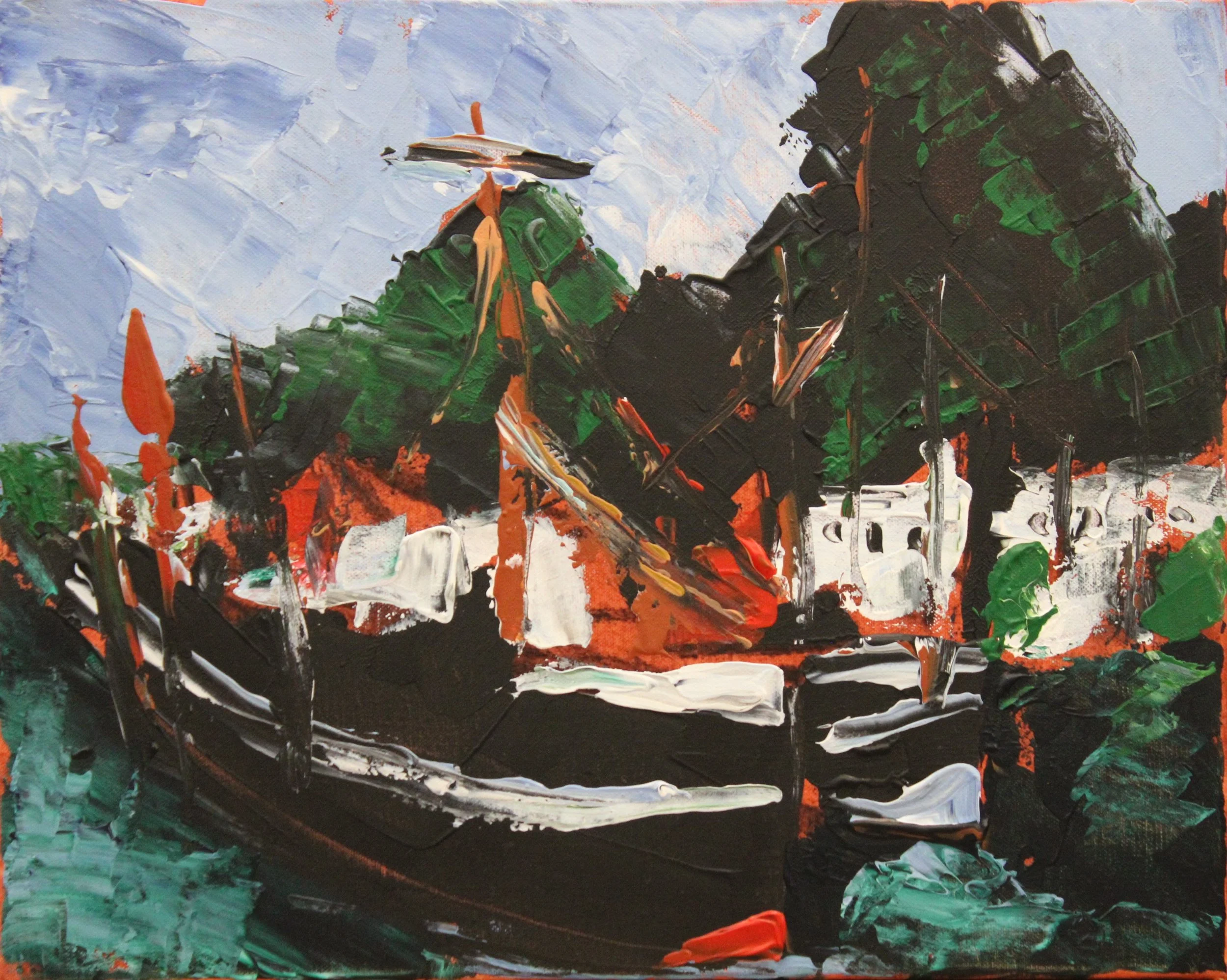 "Fischerboote im Hafen von Peggy´s Cove, Kanada", Acryl auf Leinwand, gespachtelt, 50 x 50 cm, September 2025 (L-998)