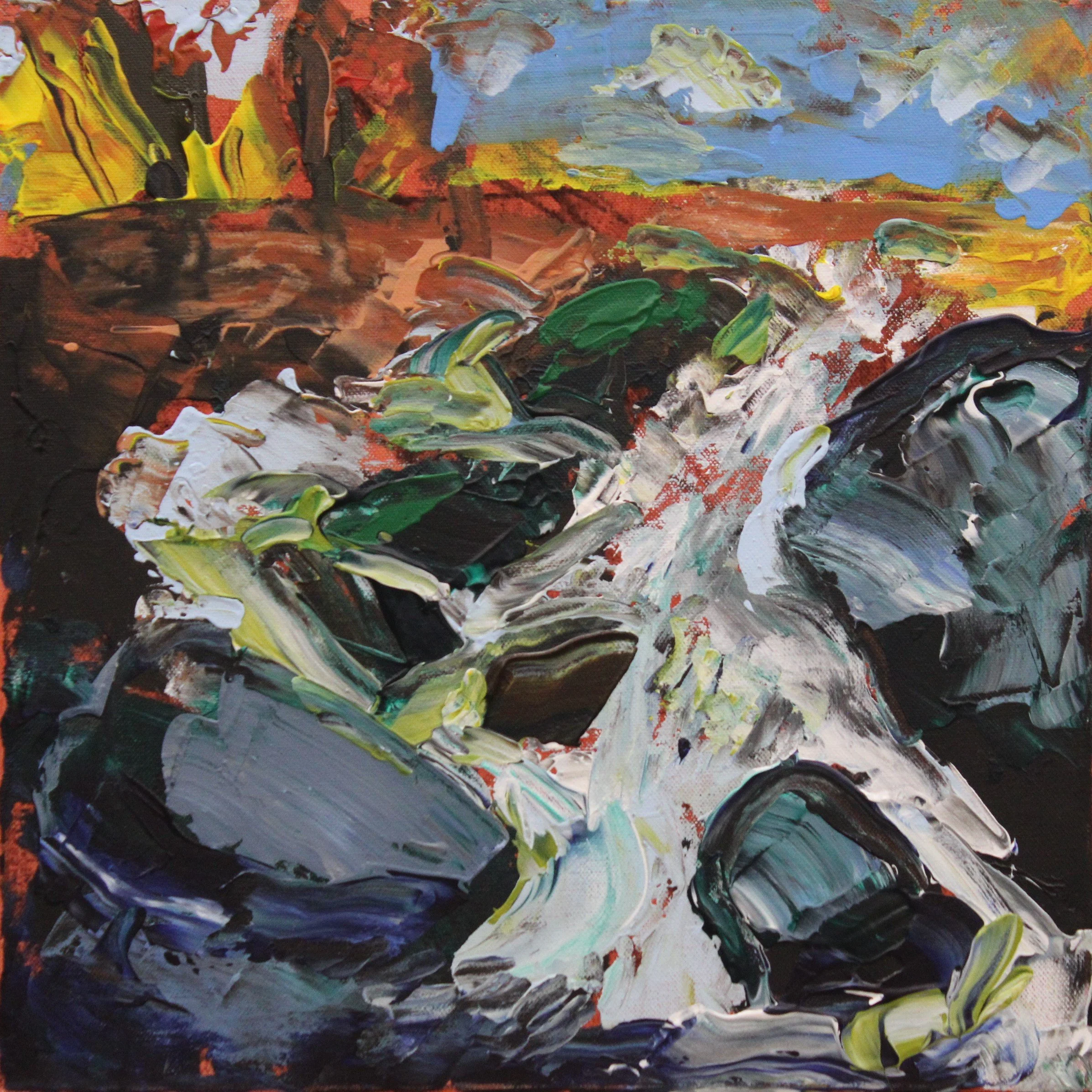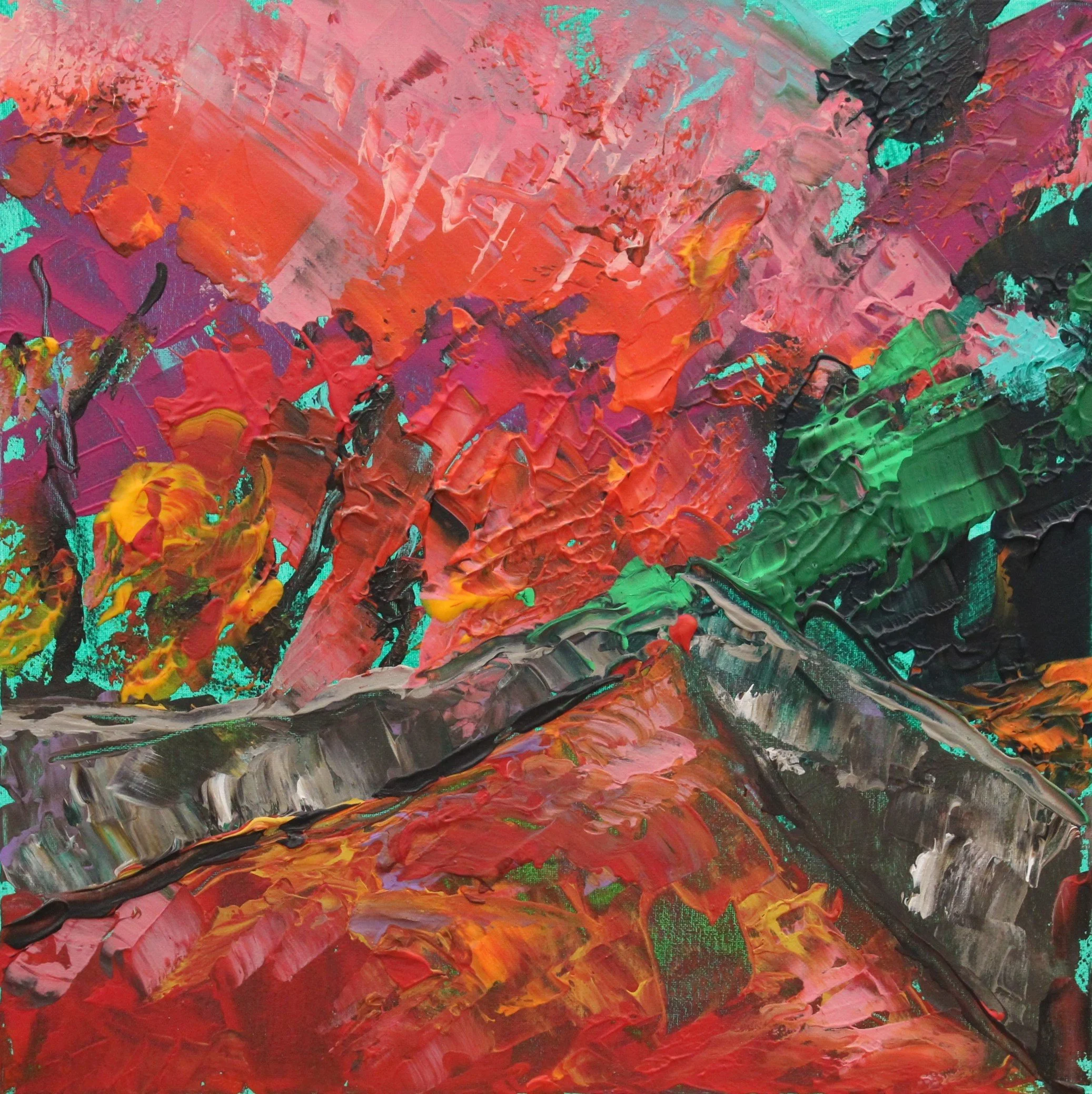 "Wildbach", Acryl auf Leinwand, gespachtelt, 40 x 40 cm, September 2025 (L-1009)