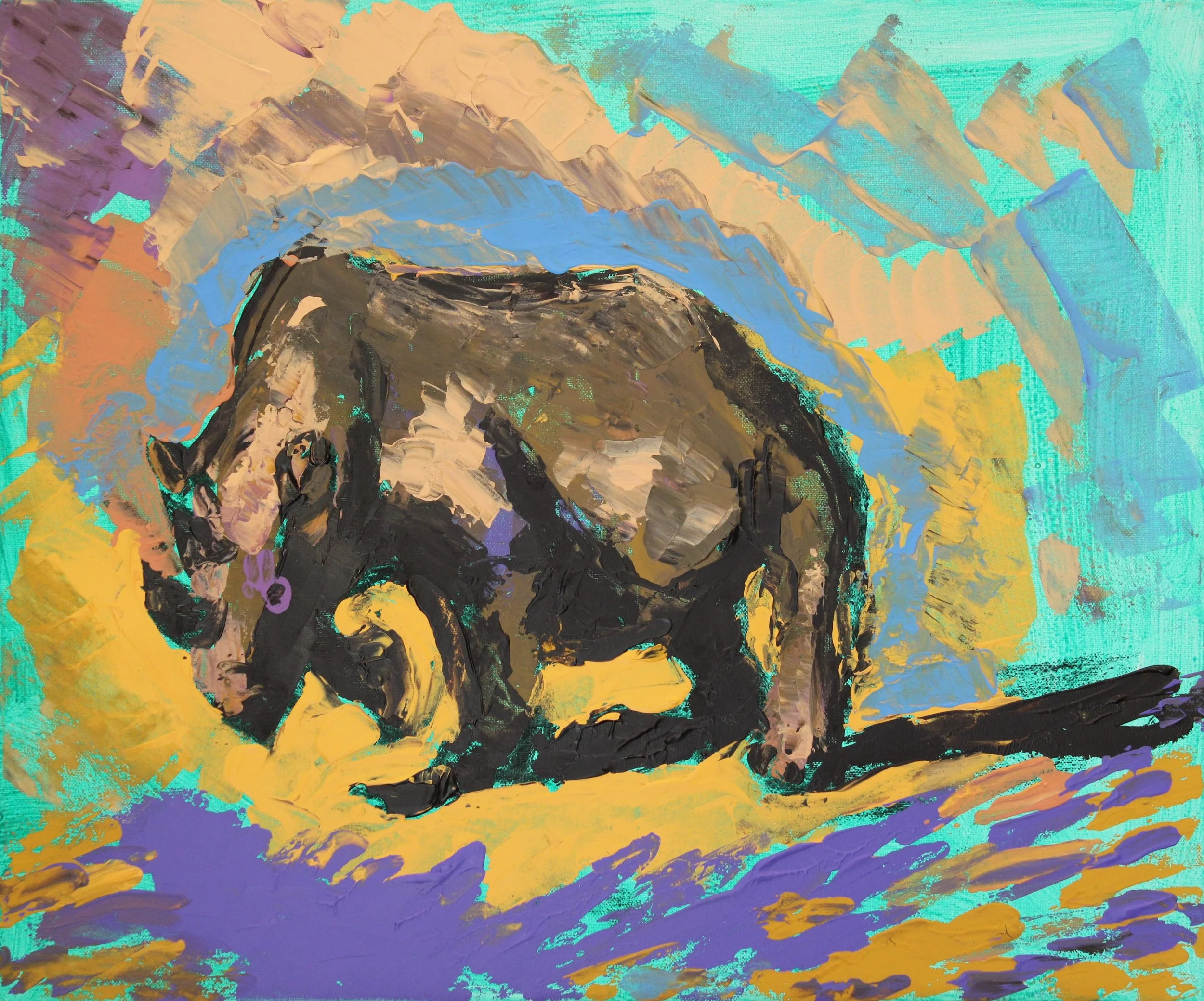 "Spitzmaulnashorn, Kenia", Acryl auf Leinwand, gespachtelt, 50 x 60 cm, Oktober 2025 (D-1017)