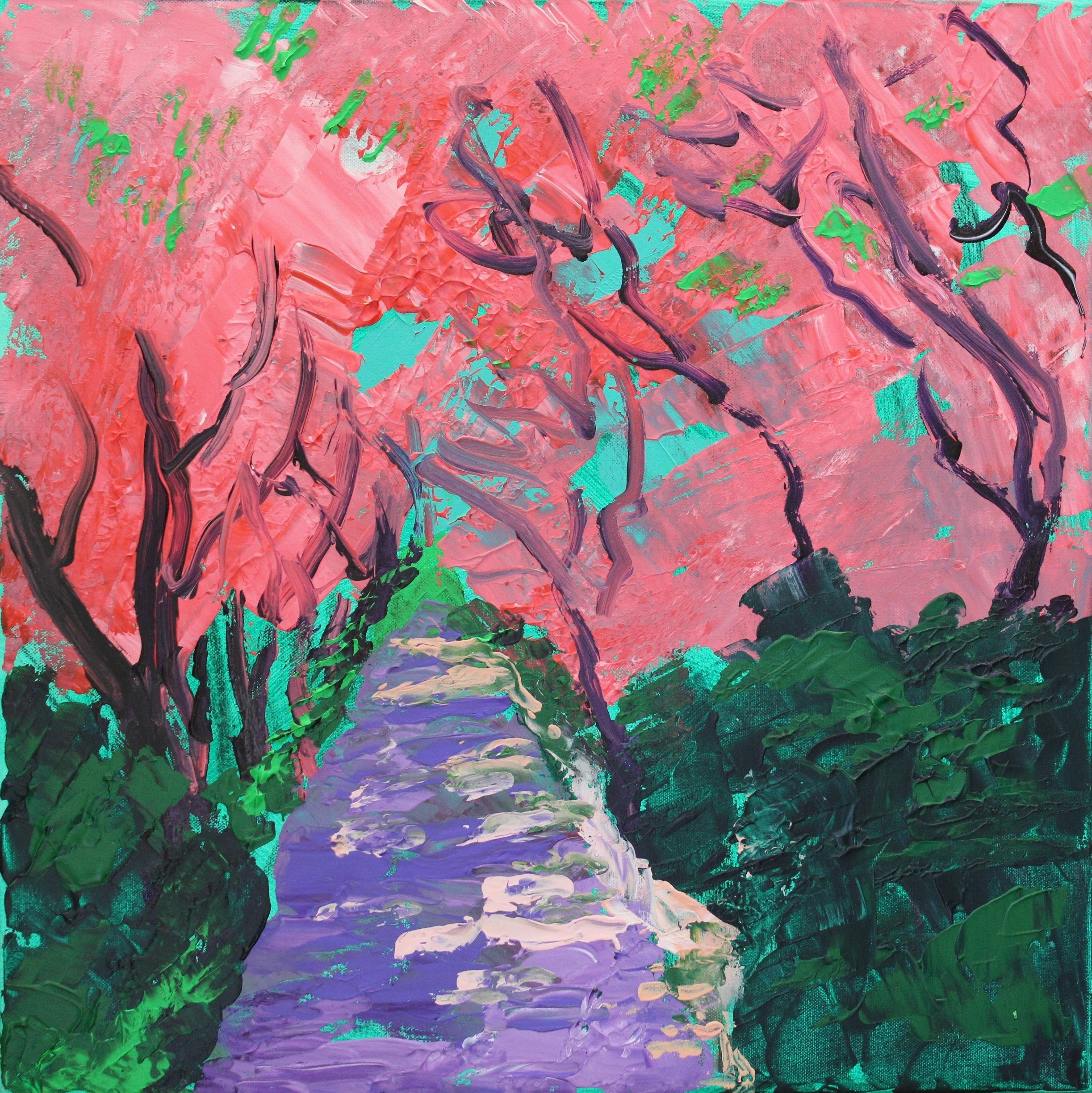 "Allee mit japanischen Kirschbäumen", Acryl auf Leinwand, gespachtelt, 60 x 60 cm, Oktober 2025 (L-1021)