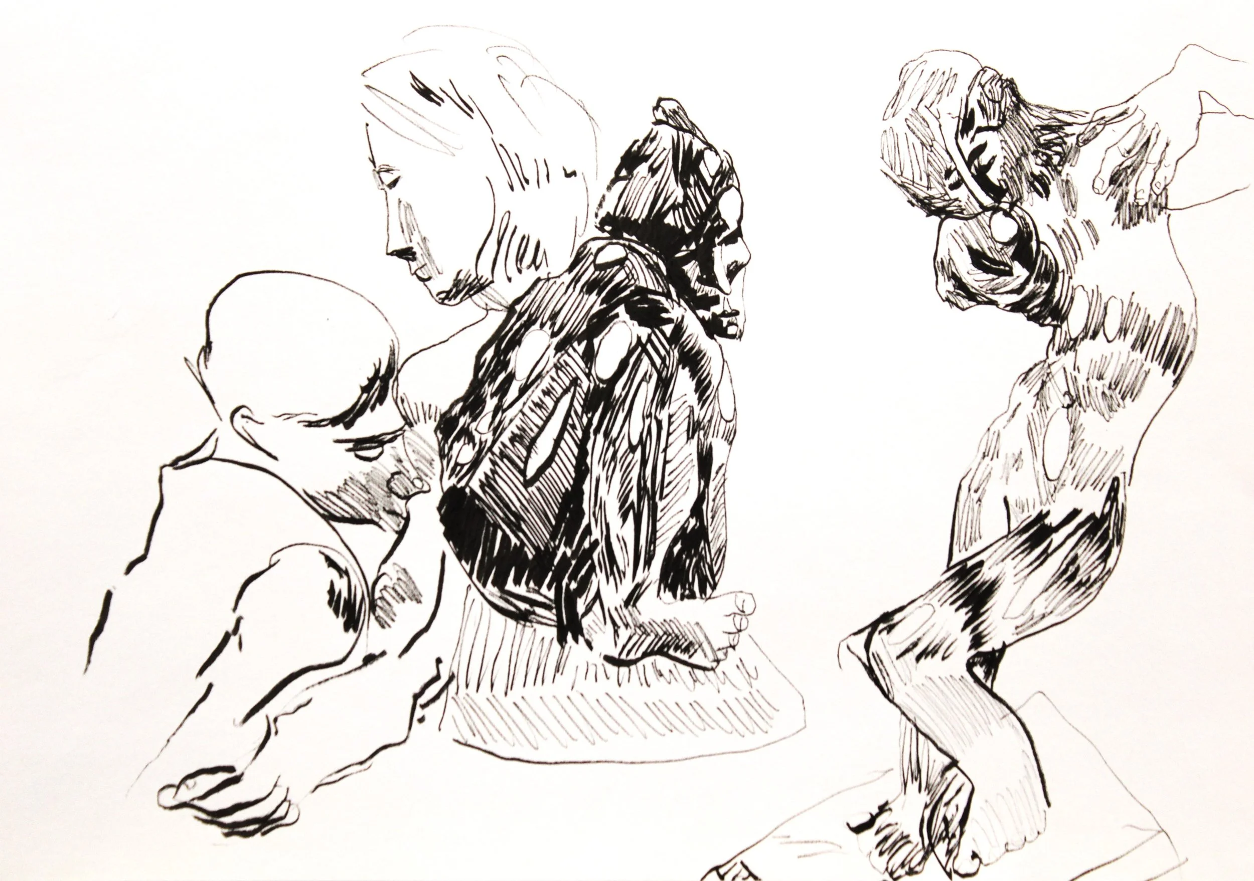 "In der Gosse I", Calligraphiestift auf Zeichenpapier, 29,7 x 42 cm, August 2025 (Z-Z-356)