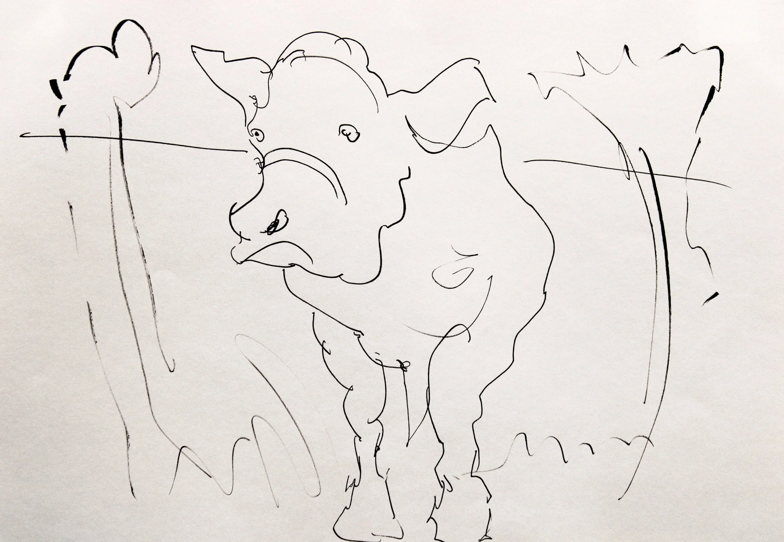"Stier II", Calligraphiestift auf Zeichenpapier, 29,7 x 42 cm, September 2025 (Z-Z-401)