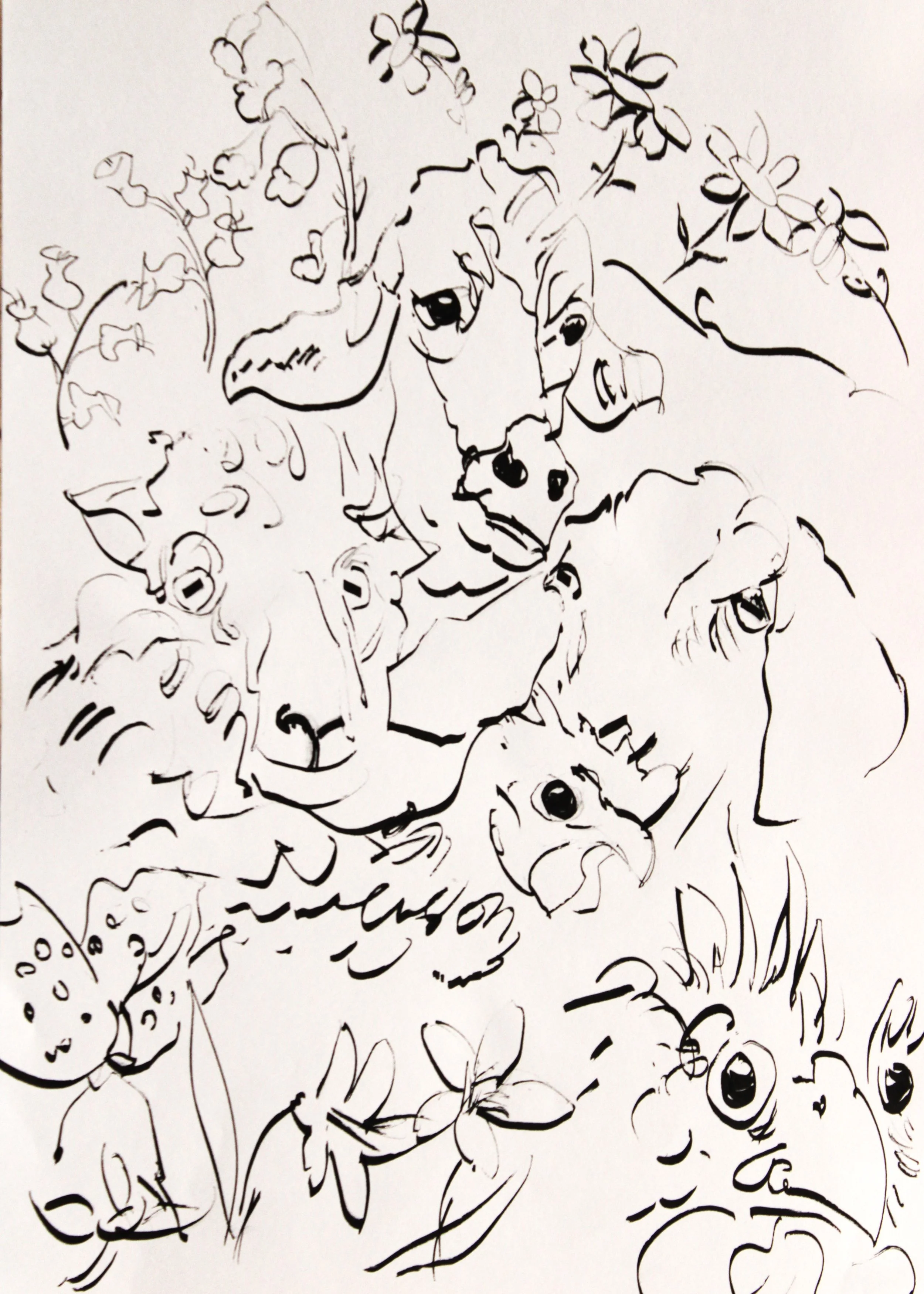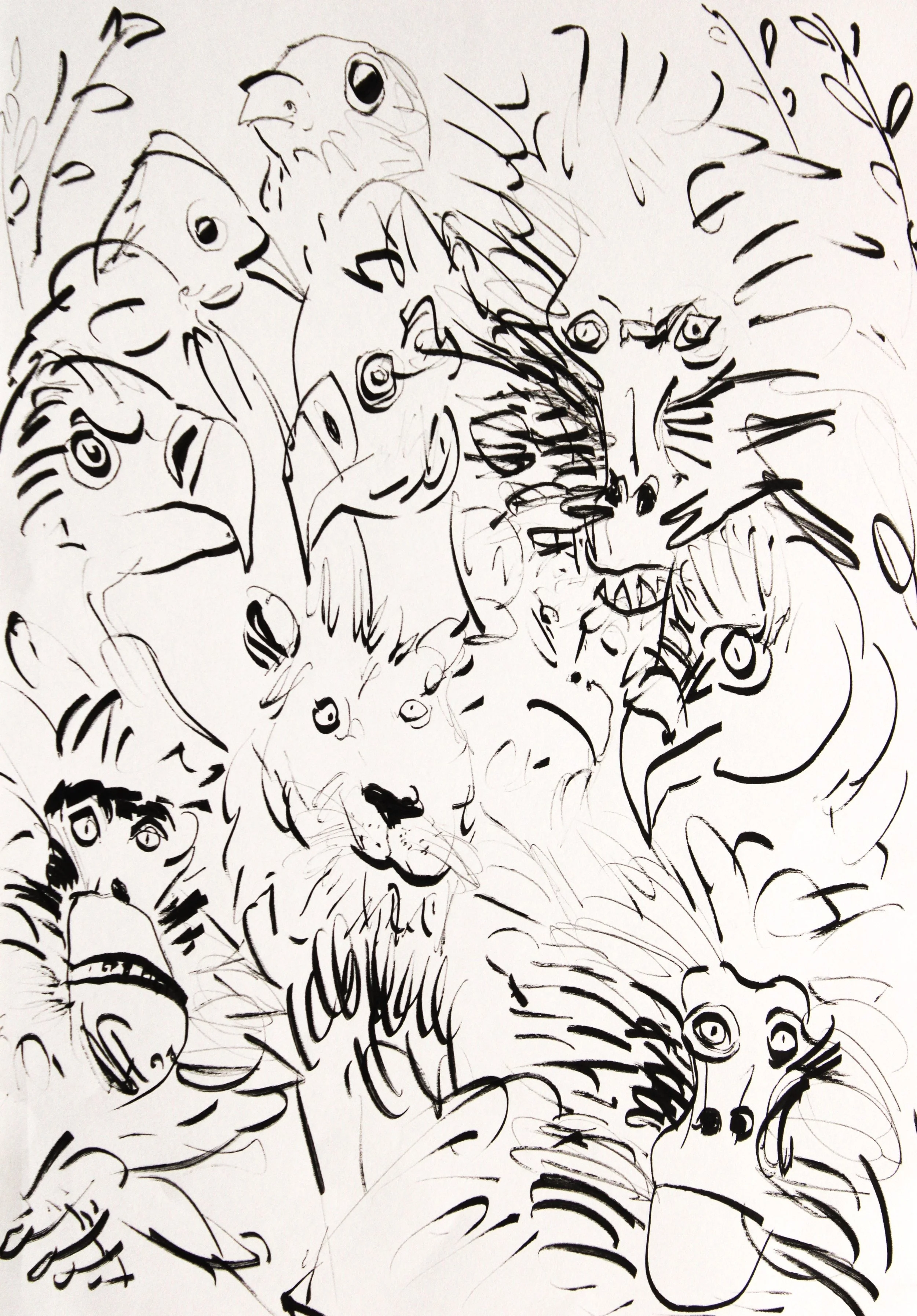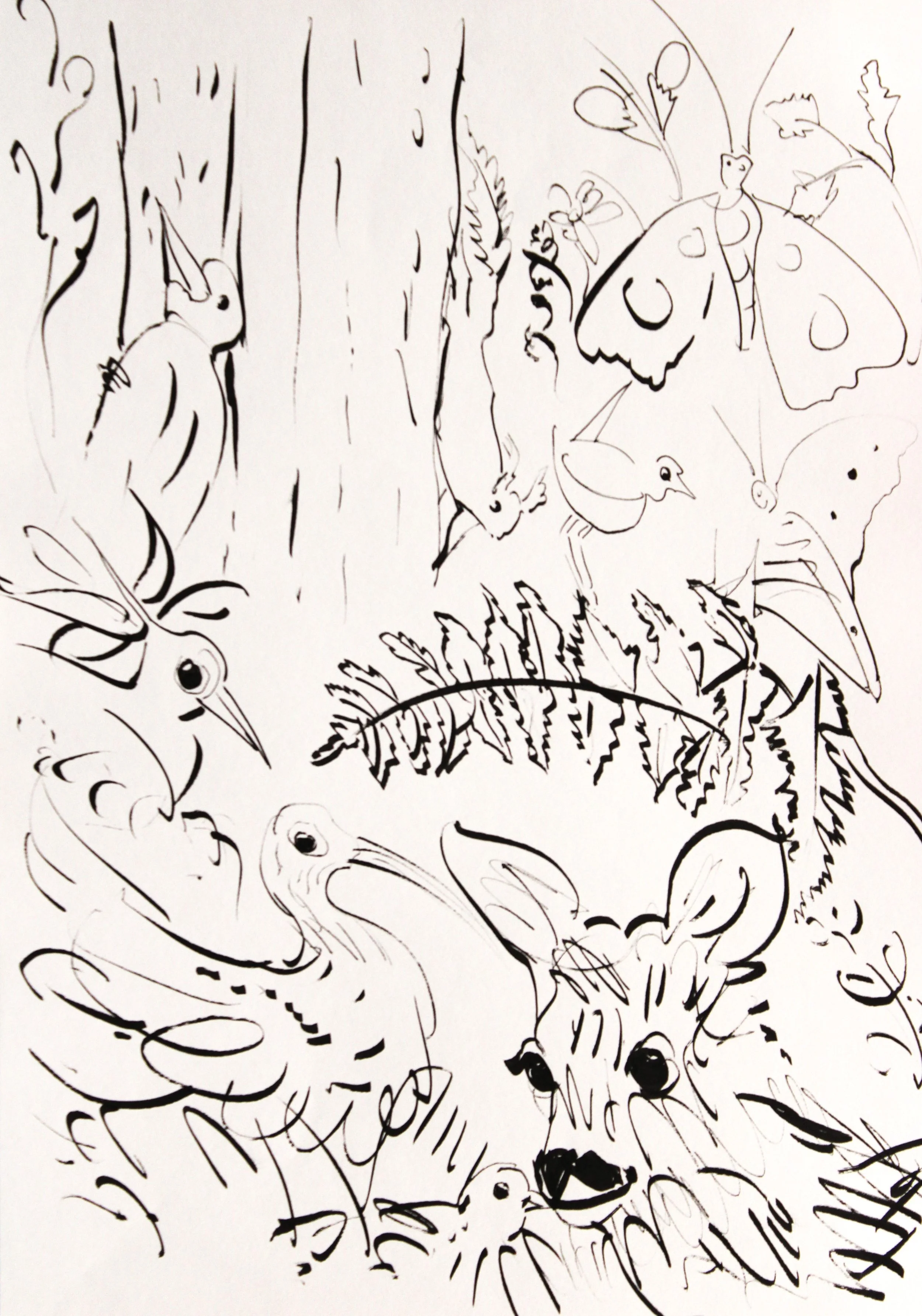 "Fauna-Träum´", Calligraphiestift auf Zeichenpapier, 42 x 29,7 cm, September 2025 (Z-Z-395)