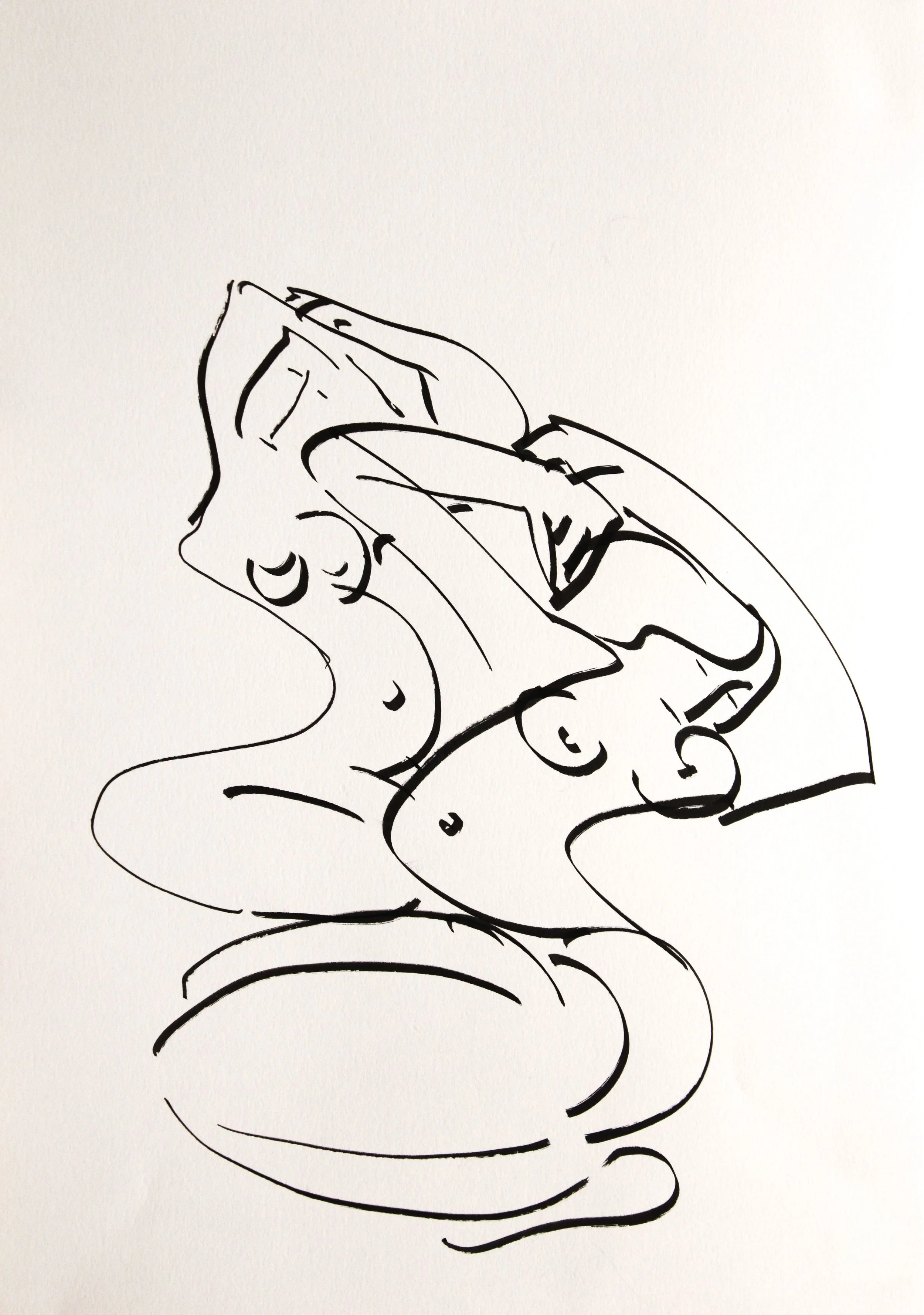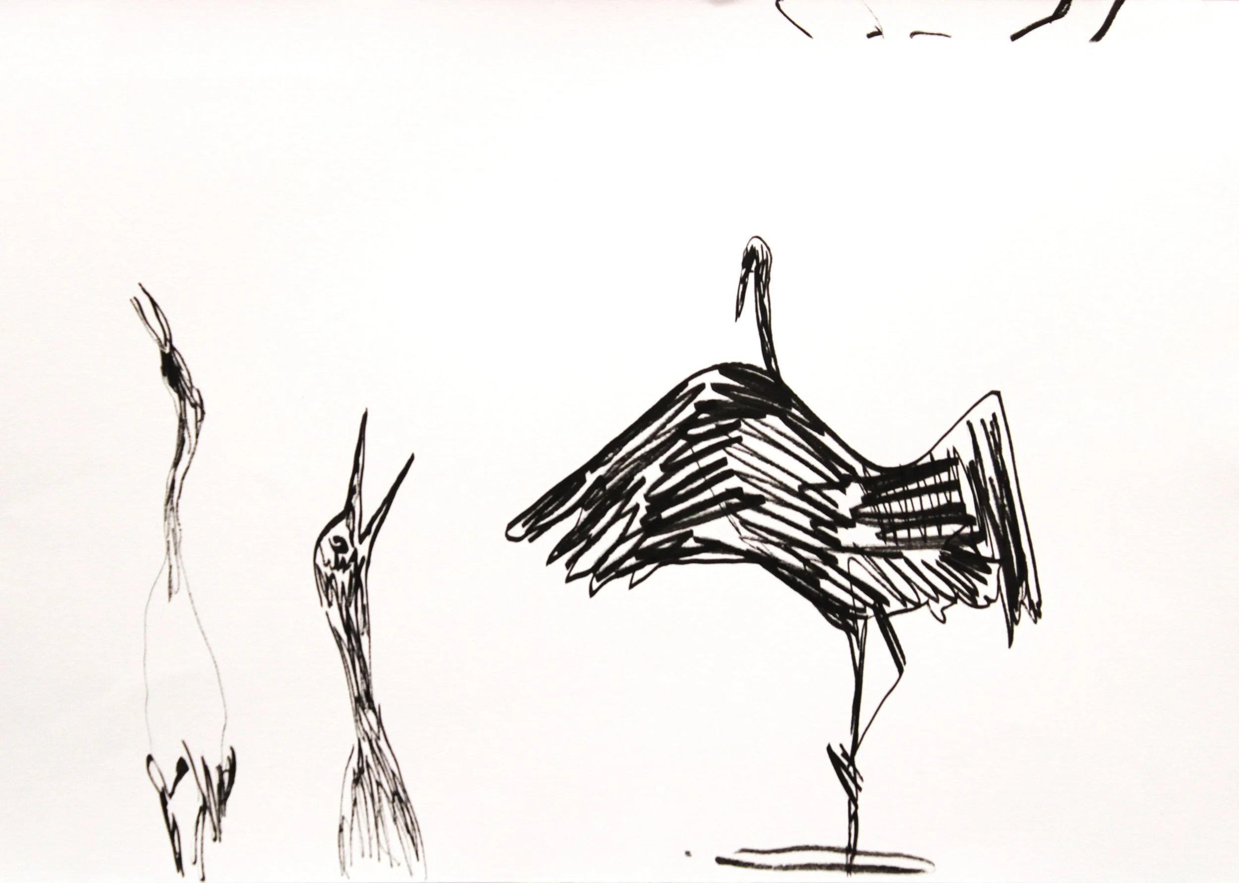 "Reihertanz", Calligraphiestift auf Zeichenpapier, 29,7 x 42 cm, August 2025 (Z-Z-412)