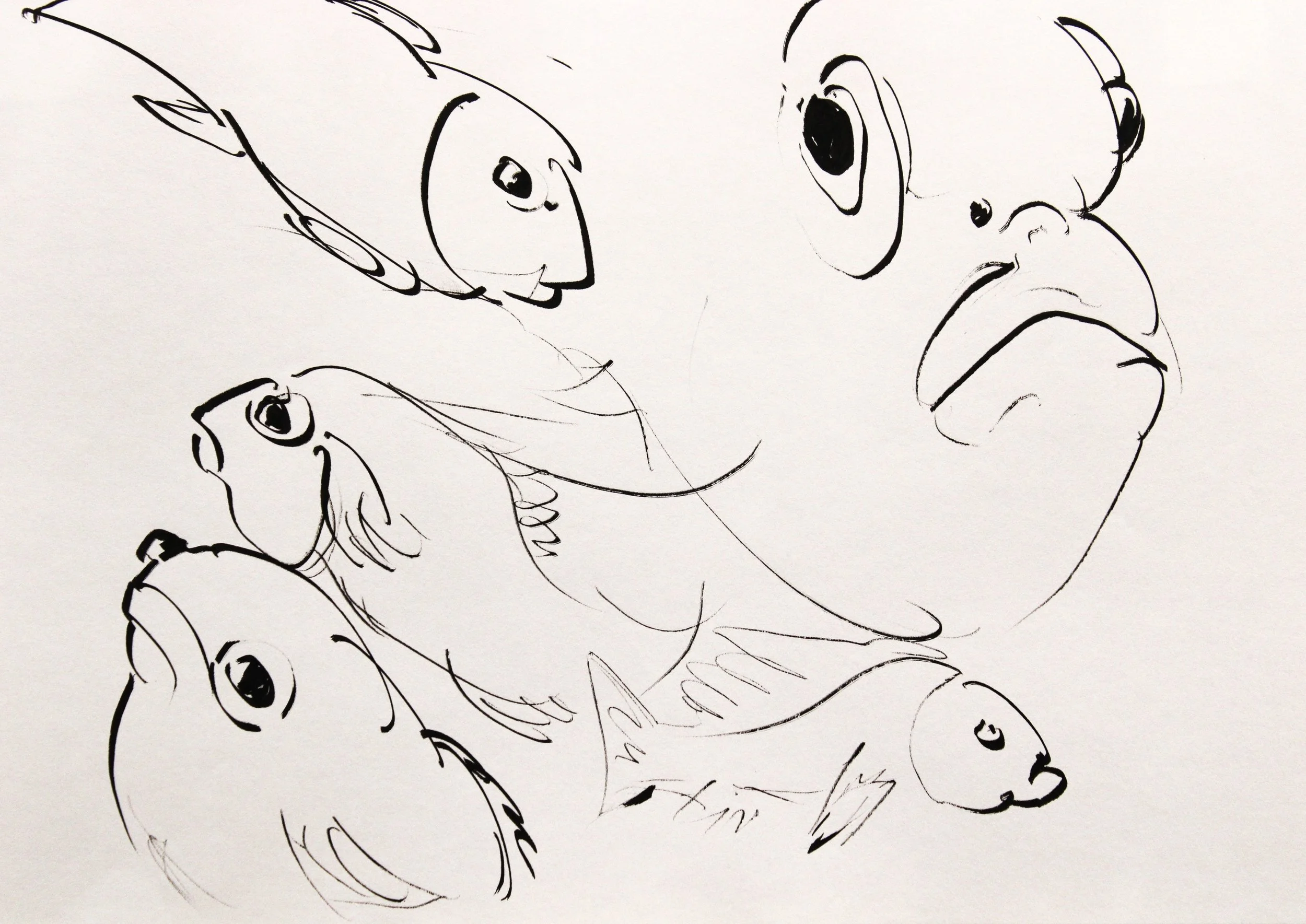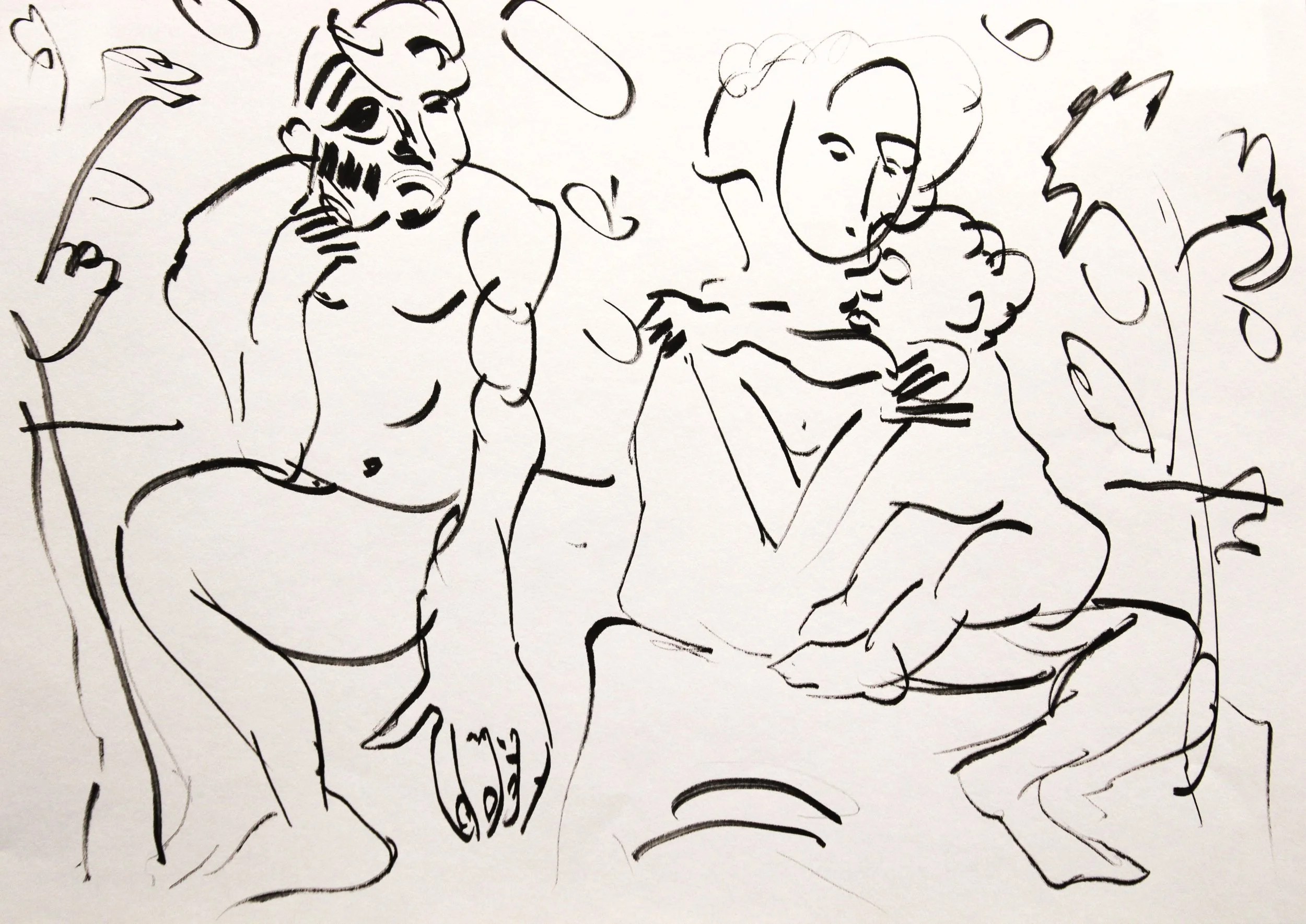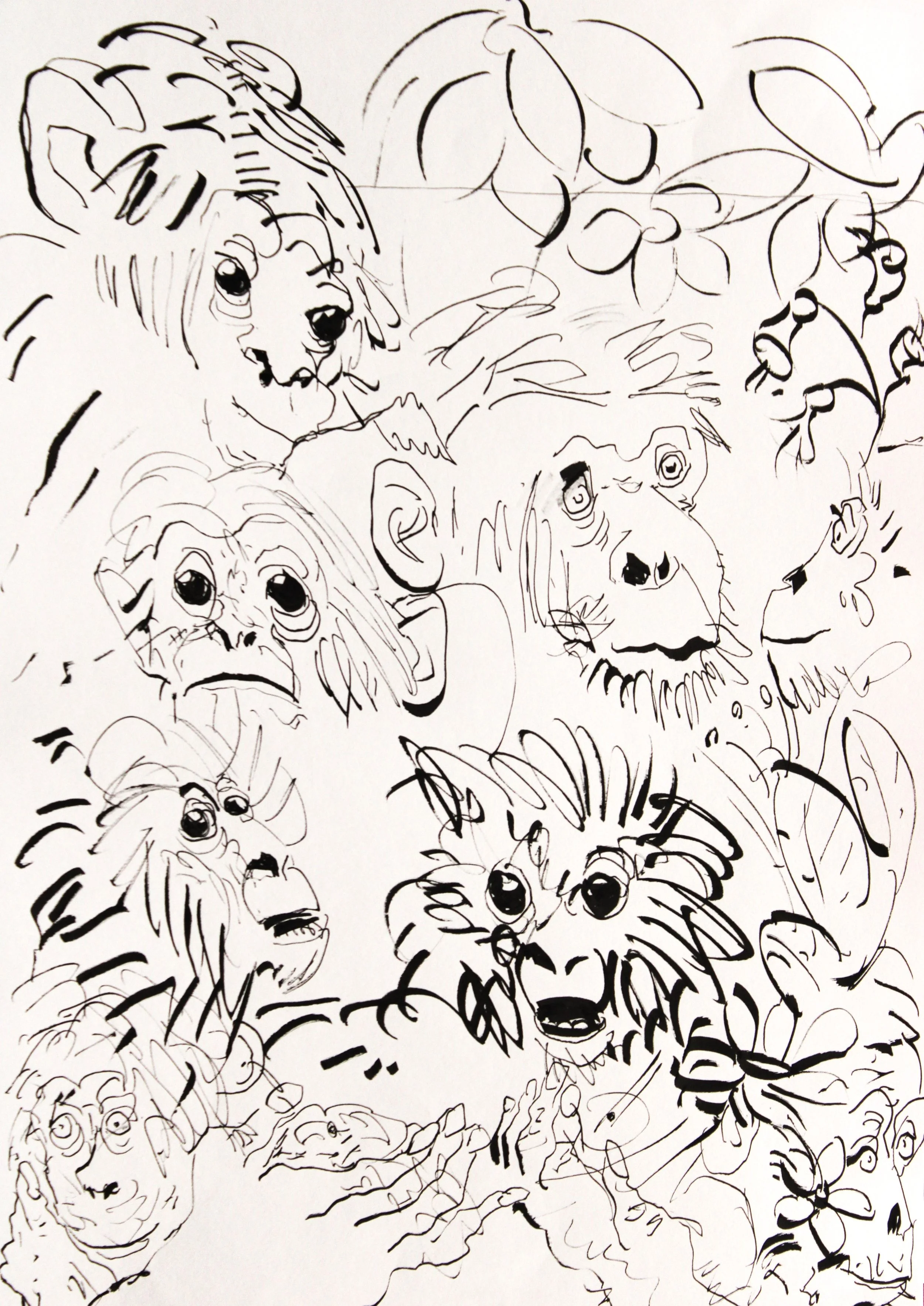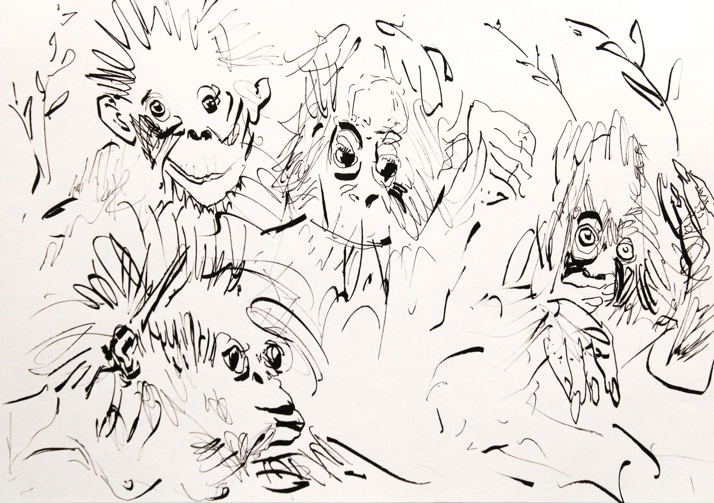 "Orang-Utans I", Calligraphiestift auf Zeichenpapier, 29,7 x 42 cm, September 2025 (Z-Z-389)
