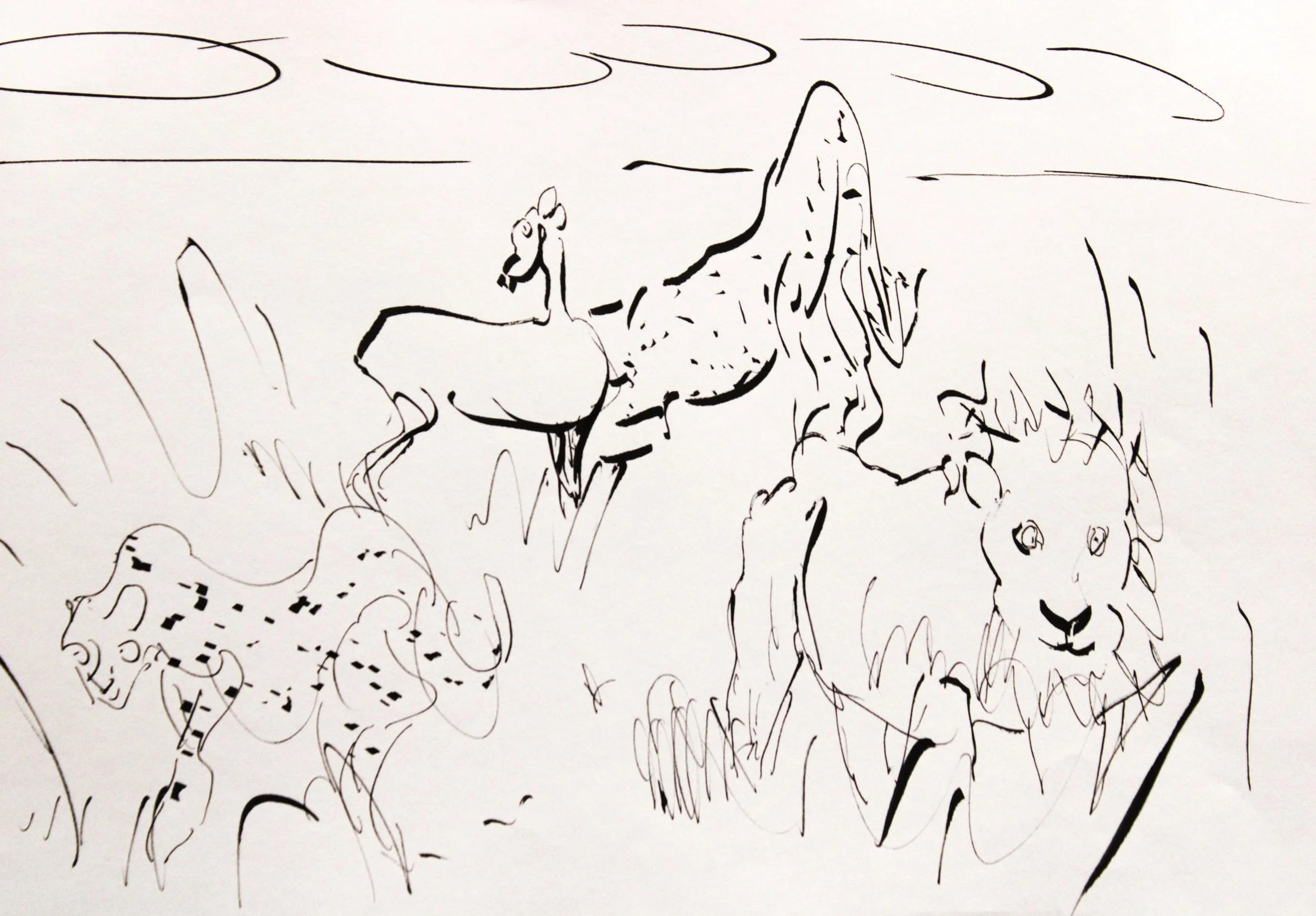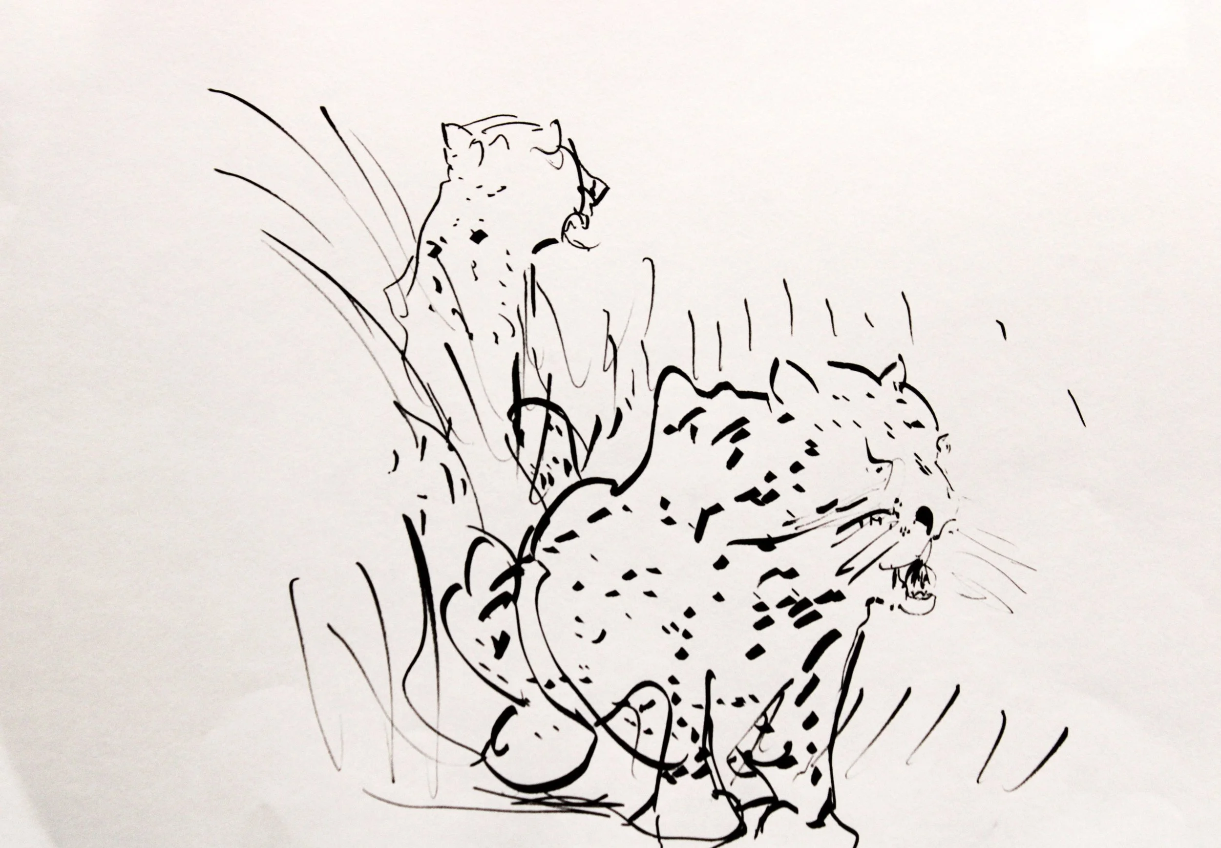 "Geparden-Nachwuchs", Calligraphiestift auf Zeichenpapier, 29,7 x 42 cm, September 2025 (Z-Z-403)