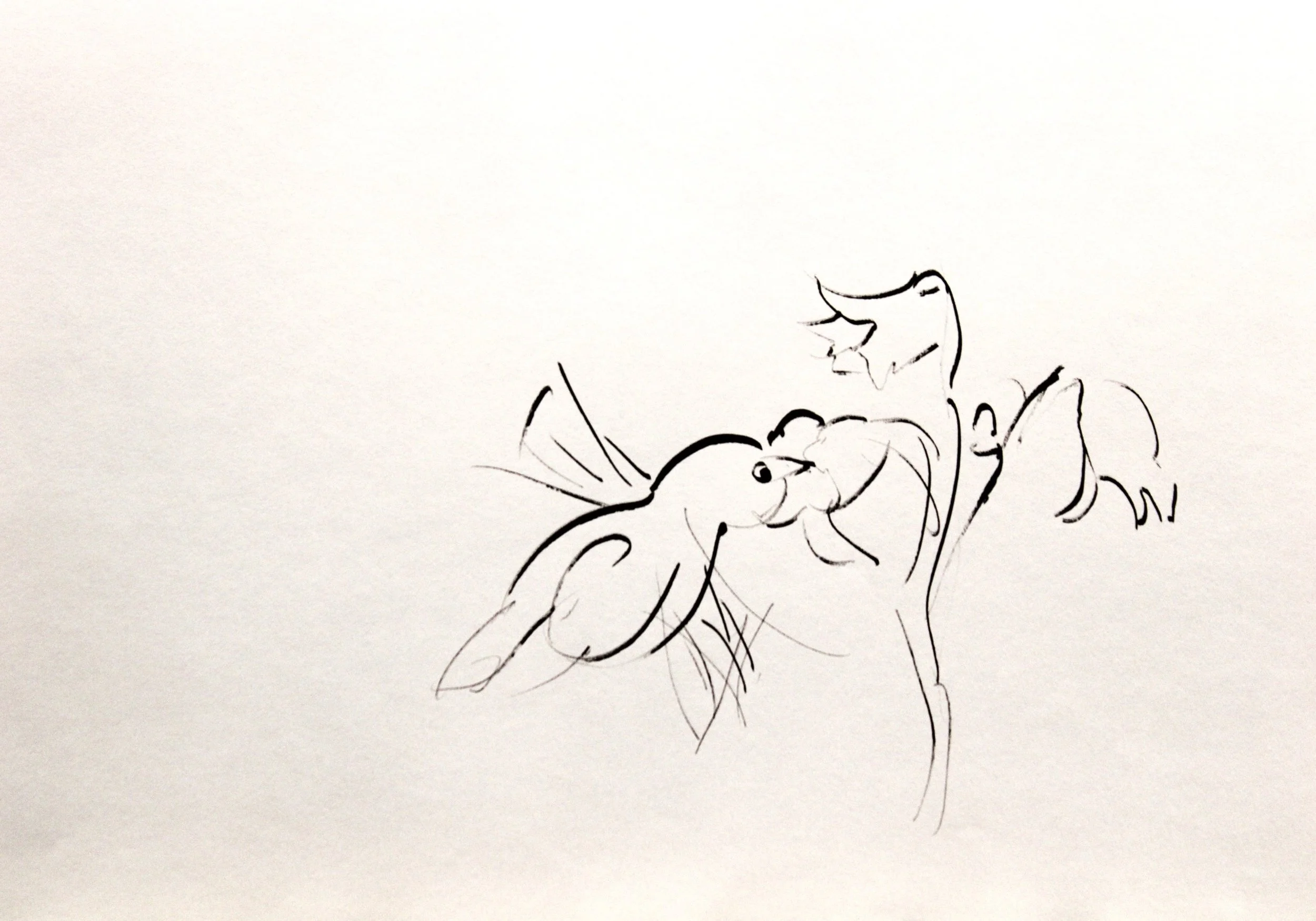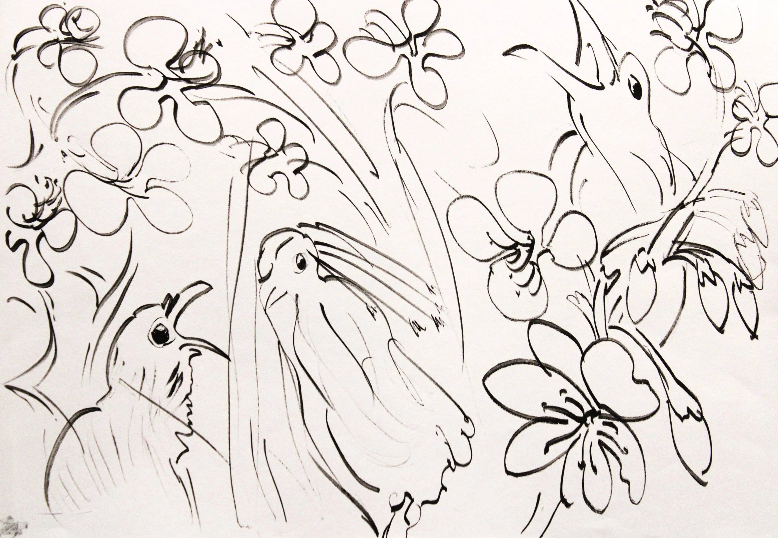 "Kolibri", Calligraphiestift auf Zeichenpapier, 29,7 x 42 cm, August 2025 (Z-Z-360)