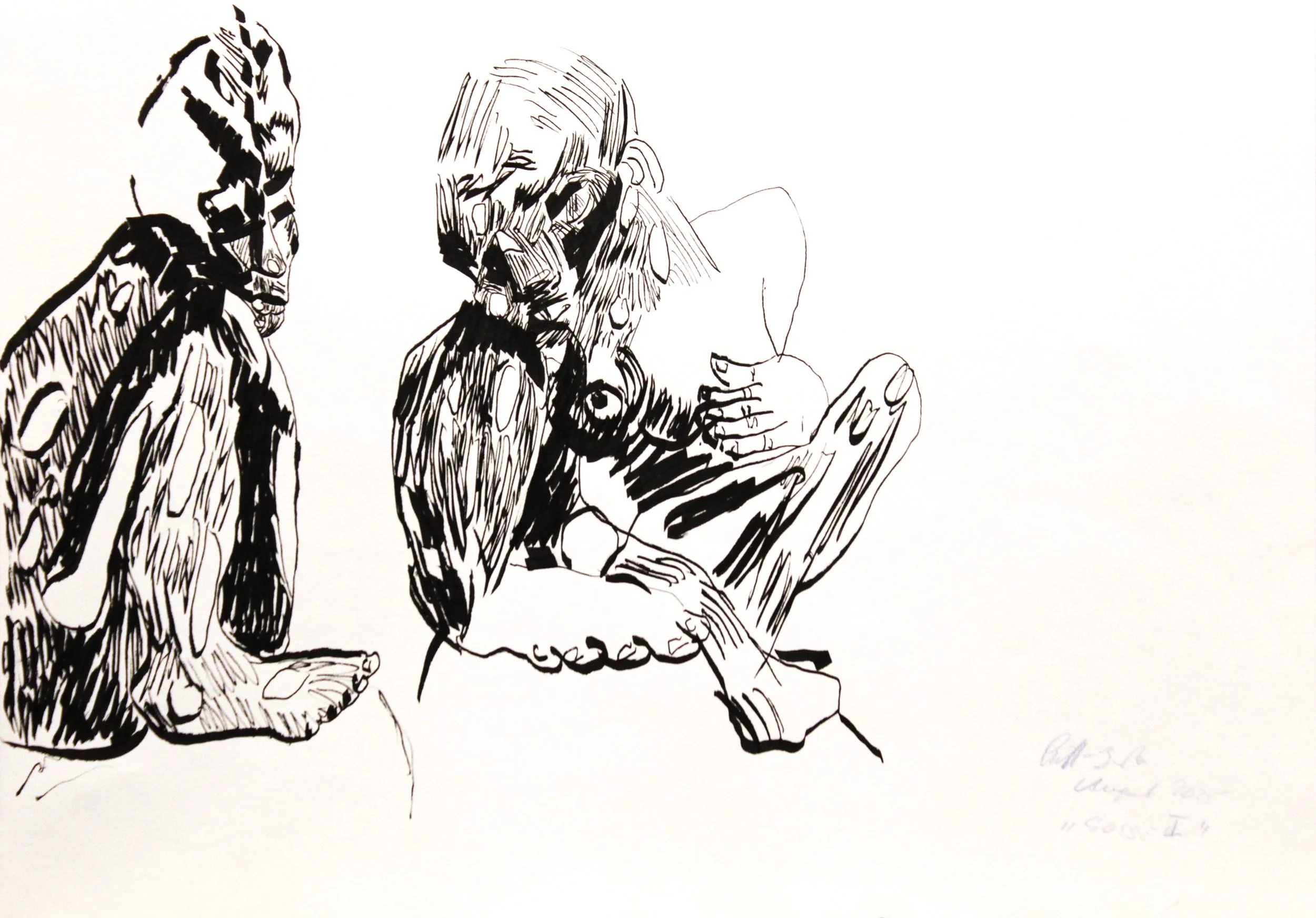 "Die Hoffnungslosen", Calligraphiestift auf Zeichenpapier, 29,7 x 42 cm, September 2025 (Z-Z-371)