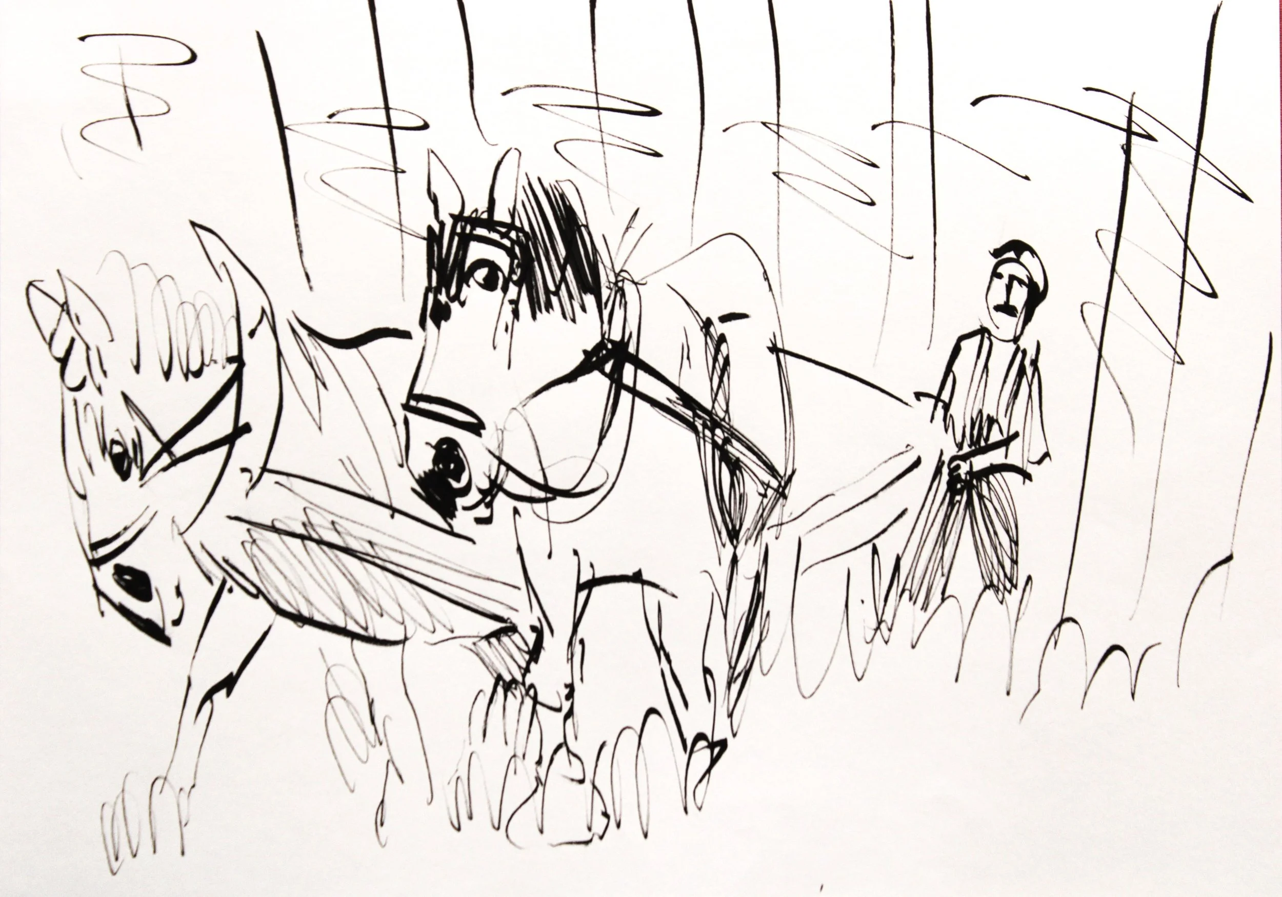"Auf der Weide", Calligraphiestift auf Zeichenpapier, 29,7 x 42 cm, September 2025 (Z-Z-375)