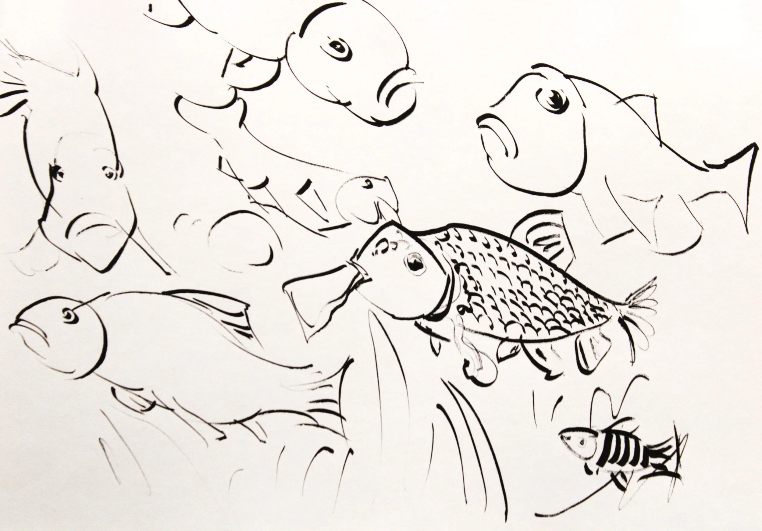 "Unter Wasser II", Calligraphiestift auf Zeichenpapier, 29,7 x 42 cm, August 2025 (Z-Z-429)